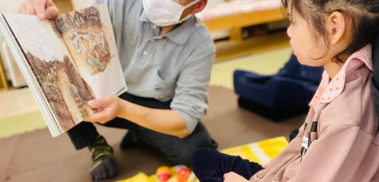 こんにちは 🙂 作業療法士の出波です。 今日は、学校帰りのおともだちが絵本を読ん