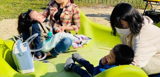 こんにちは!!看護師の松本です 🙂 今日は舞鶴公園で実証実験中のインクルーシブ遊