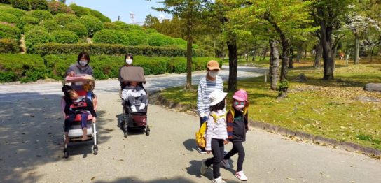 こんにちは、保育士の森近です。 今日もお散歩と、久しぶりに階段の上り下りの練習を