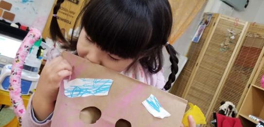 こんにちは!看護師の松本です 🙂 今日も鬼のお面作りをしました。
