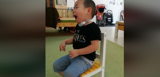 こんにちは!児発管の川津です。 今日のお友達。今後うまくいけば、気管切開した穴を