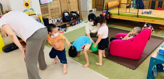 こんにちは 🙂 理学療法士の嶋谷です 🙂 今日はボールや風船を使って身体を動かし