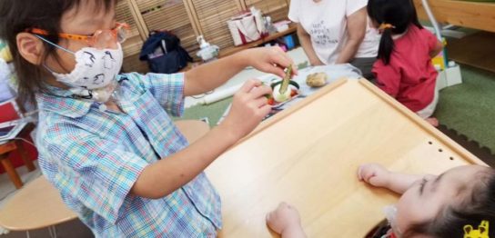 こんにちは!!看護師の松本です 🙂 今日は野菜でスタンプ遊びをしま