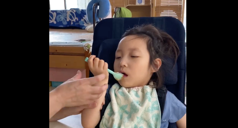 こんにちは!看護師の松本です 😀 放デイのお友達自分で食べる練習中です 😉 途中