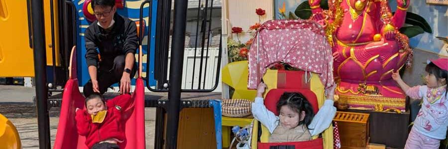 インクルーシブの遊具でたくさん遊んで木陰のクローバー🍀の絨毯の上で一休み。