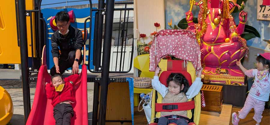 平和蒲鉾でお買い物の練習。ガネーシャにも久しぶりに会えたけどちょっと怖かったかな〜。