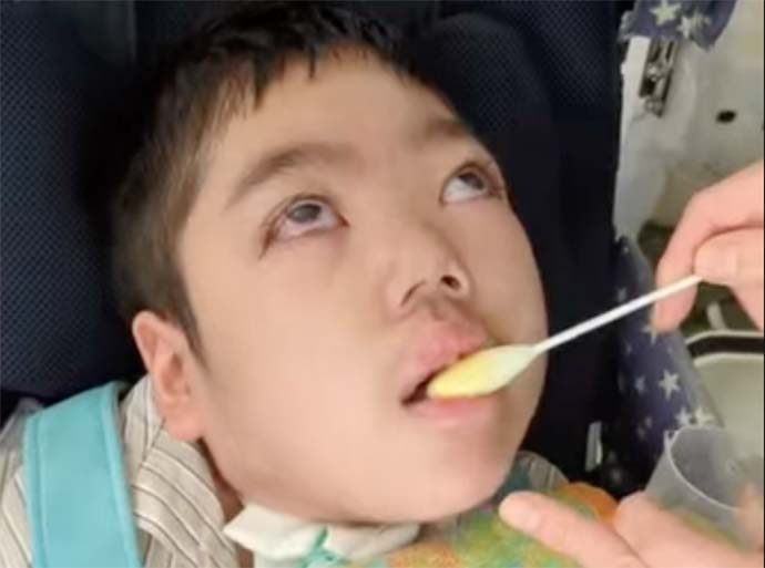 嚥下の訓練で、大好きなオレンジ🍊をペロペロ😋