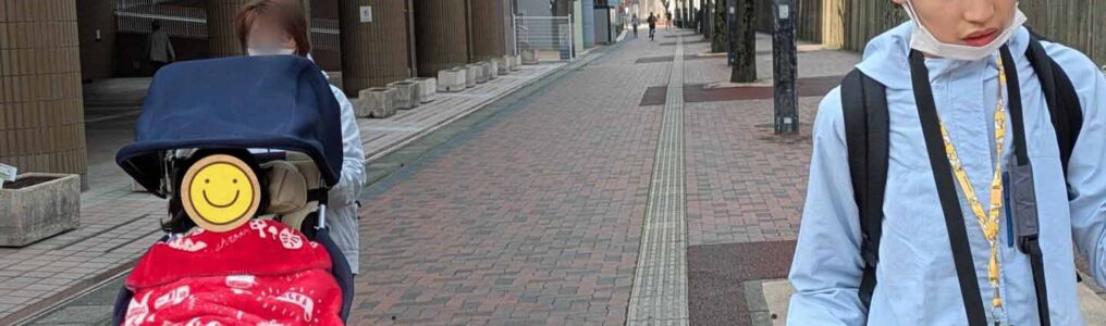 交通ルールを見守りながら付かず離れずの屋外散策。
