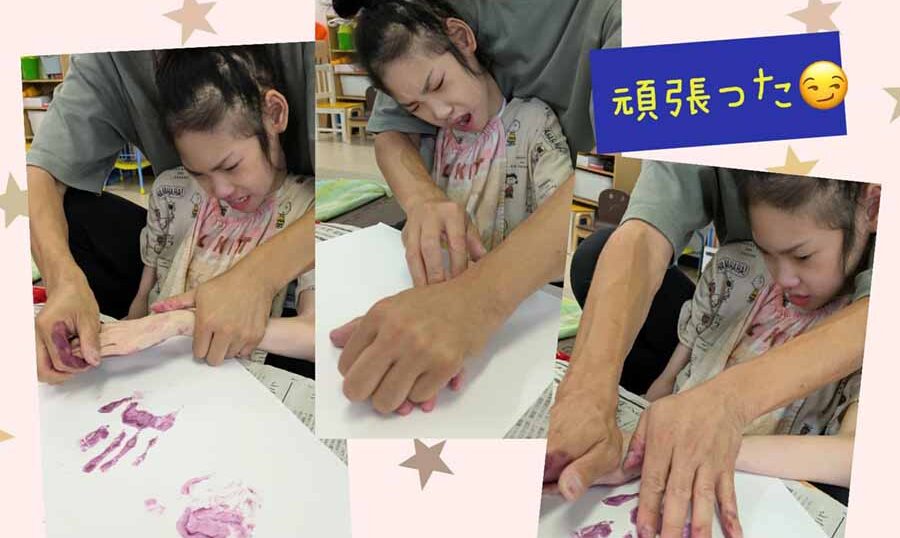 夏休みも中盤になりましたが、ひだまりの夏はまだまだこれから!という事で、手形で花火🎇を作る準備をしました🙂