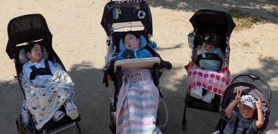 こんにちは、スタッフのオダです。 みんなで公園へお散歩です。 滑り台等の遊具で遊