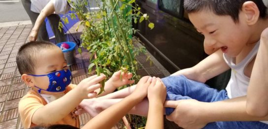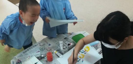 こんにちは 🙂 保育士の森近です。 今日は、1年生の男の子と、2年生の女の子が、
