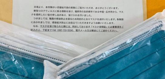 『中国・広州市からのサージカルマスクの支援』 福岡市ホームページより引用 福岡市