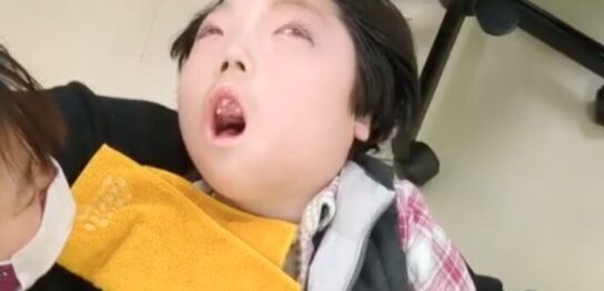 こんにちは😁 児童指導員の中島です。 呼吸器を付けている男の子。