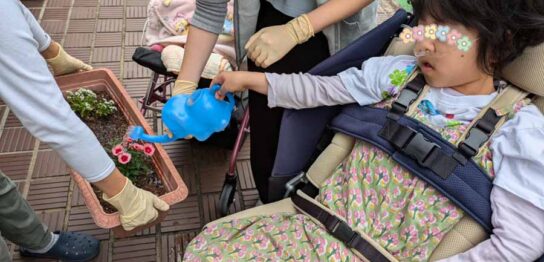 こんにちは!看護師の上島です。 ひだまりのおうちの入口にいくつかのプランターが置