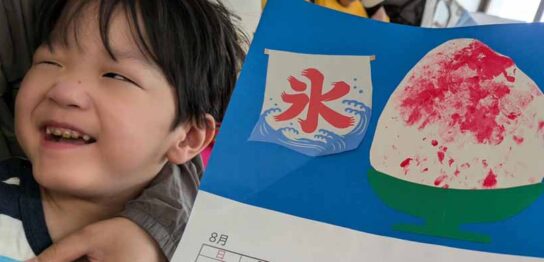 こんにちは😃 児童指導員の中島です。 8月のカレンダーのかき氷&